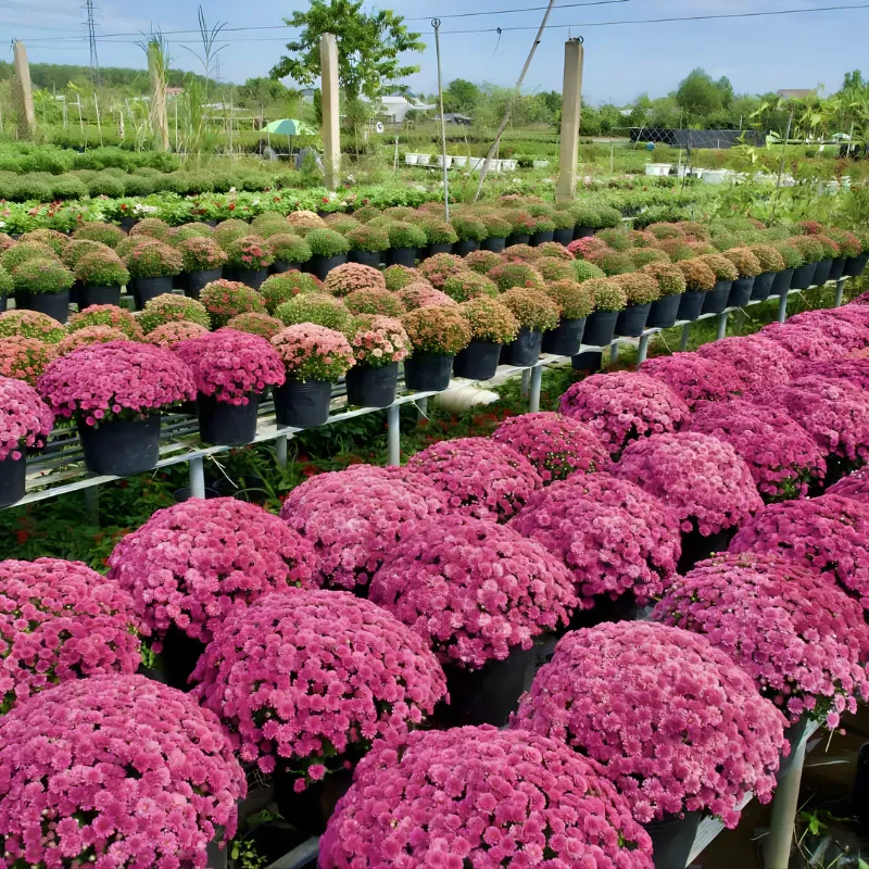 Sau khi ra vườn ươm, cây con cúc MX Hồng cấy mô bắt đầu phát triển nhanh. Cây được giữ ẩm, tránh nắng gắt và bón phân nhẹ để thân lá cứng cáp. Khoảng 30–40 ngày sau, cây bước vào giai đoạn trưởng thành. Lúc này, người trồng tiến hành bấm ngọn để cây ra nhiều nhánh, giúp tán tròn yếu tố quan trọng trong chu kỳ phát triển cúc MX.