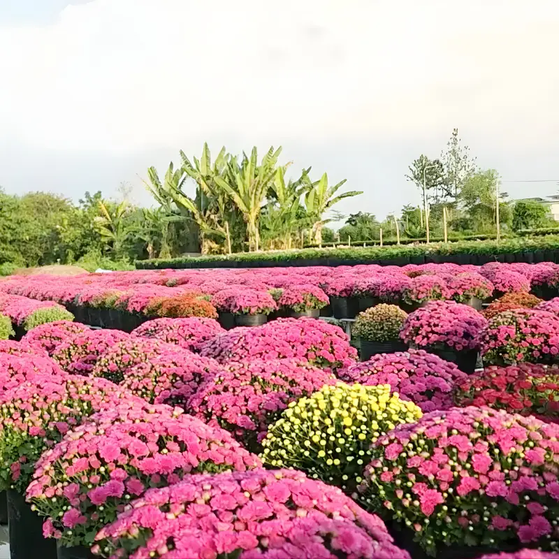 Từ sau bấm ngọn 10–15 ngày, nụ nhỏ sẽ xuất hiện. Từ nụ đến nở rộ mất thêm 20–30 ngày, tùy thời tiết và cách chăm sóc. Tổng cộng, cúc MX Hồng cấy mô mất khoảng 3–3,5 tháng để hoàn thành chu kỳ, giúp người trồng dễ dàng canh thời điểm hoa nở đúng mùa Tết theo ý muốn.